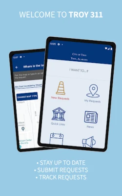 City of Troy 311 provides a way for you to connect with the City of Troy, Alabama to report problems, request services and receive community news. Use your smartphone to request assistance from public works for a pothole, report a code violation in your area, or notify us about a need at a park––you can even attach a photo with your submission! City of Troy 311 also offers you quick and easy access to the city's website, special event details and directories. Download the app today and connect with us!