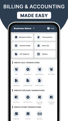 🧾 Create Transactions like Sale & Purchase, Debit & Credit note