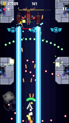- A vertically scrolling shooter with 2D pixelated graphics