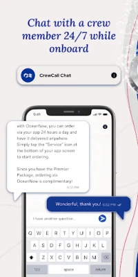 - Order food, beverages, amenities and more - anytime, anywhere via OceanNow® service (one-time fee applies, complimentary with Plus and Premier Package)