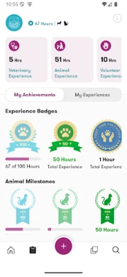 You can easily track your daily hours, along with dates, the animals you worked with and notes on the specific experience you added.