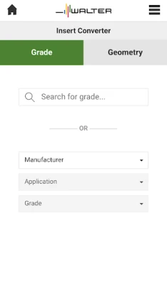 You have got a cutting application and want to use Walter inserts for the machining? It's easy with the Walter Insert Converter. Simply type-in the insert you are currently working with - and the Insert Converter tells you, which Walter inserts is equal to your current solution. The ideal app to optimize your chip cutting process and tool life, to increase the process safety and your productivity.