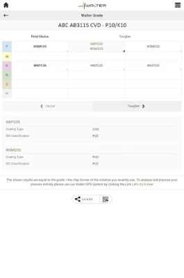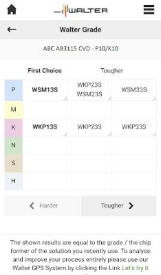 This app covers grades in the product area ISO-Turning, parting-off and grooving as well as ISO Advanced Materials (CBN/PKD/Ceramics/Cermet). The chip former covers the areas ISO-Turning as well as parting-off and grooving.