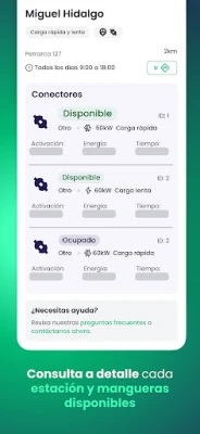 - Encuentra estaciones cercanas: Localiza estaciones de carga rápida y lenta en tiempo real, con información detallada de disponibilidad. - Gestión fácil de recargas: Escanea un QR para iniciar tu carga y consulta el progreso al instante. - Pagos seguros: Guarda tus tarjetas o utiliza nuestra wallet para pagar de forma rápida y segura. - Historial y control: Revisa tus recargas y consulta los detalles de cada transacción en cualquier momento. - Soporte 24/7: Estamos disponibles cuando nos necesites, con atención personalizada a través de WhatsApp y llamadas.